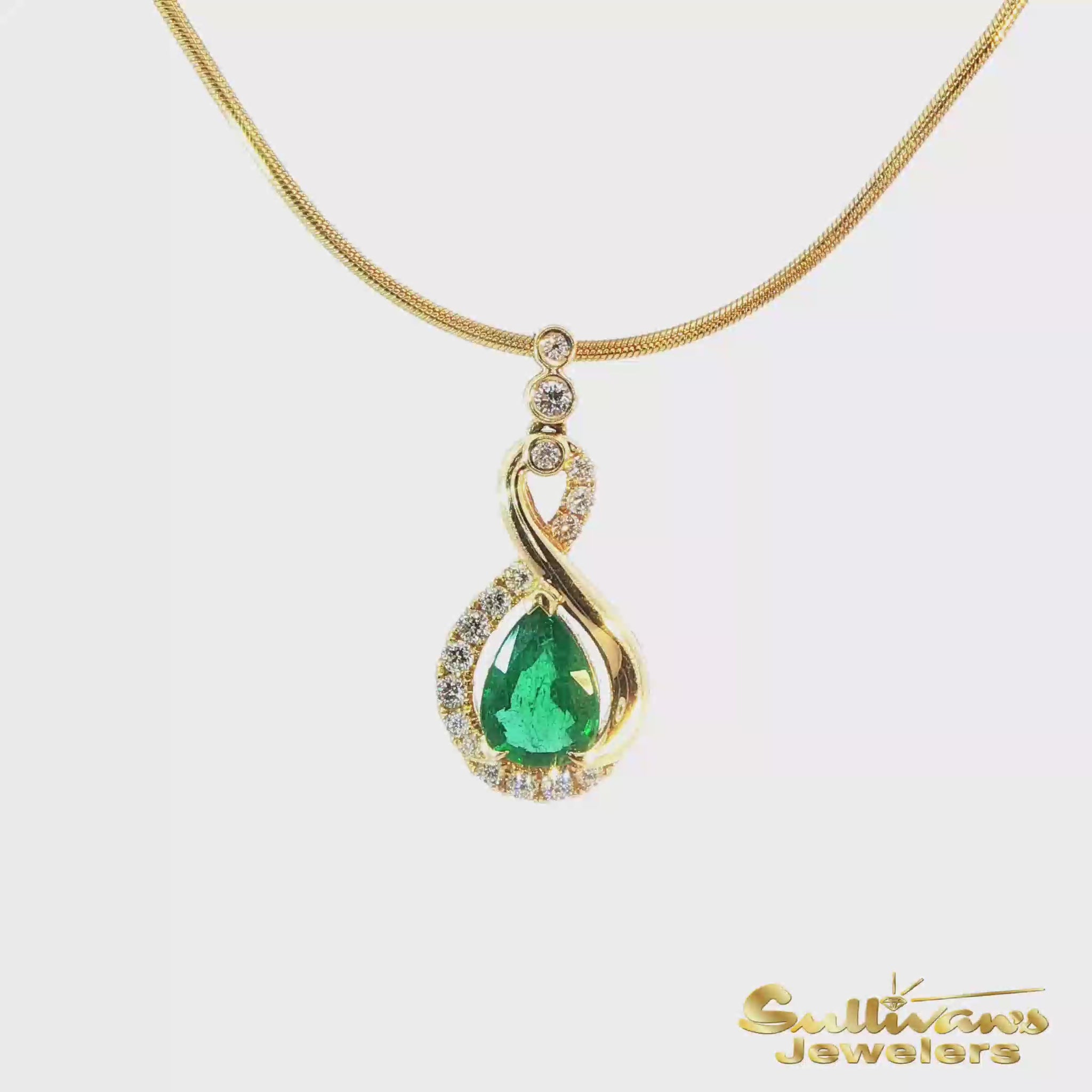 18K Yellow Gold Pear Shaped Emerald Pendant