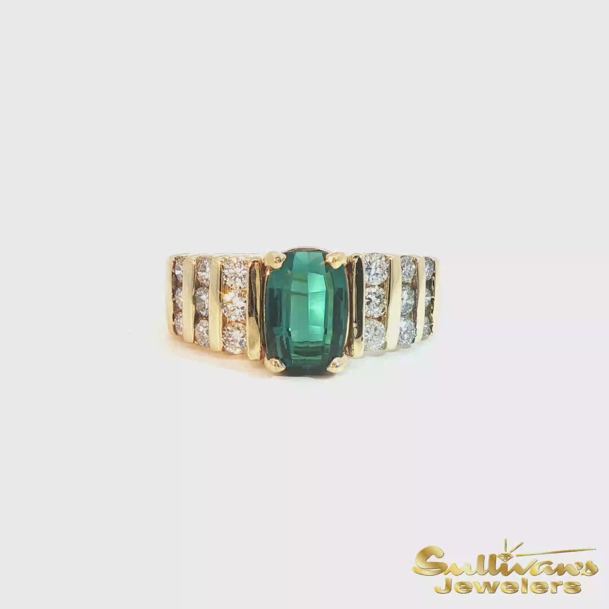 - 14K Yellow Gold Teal Tourmaline Diamond Ring
