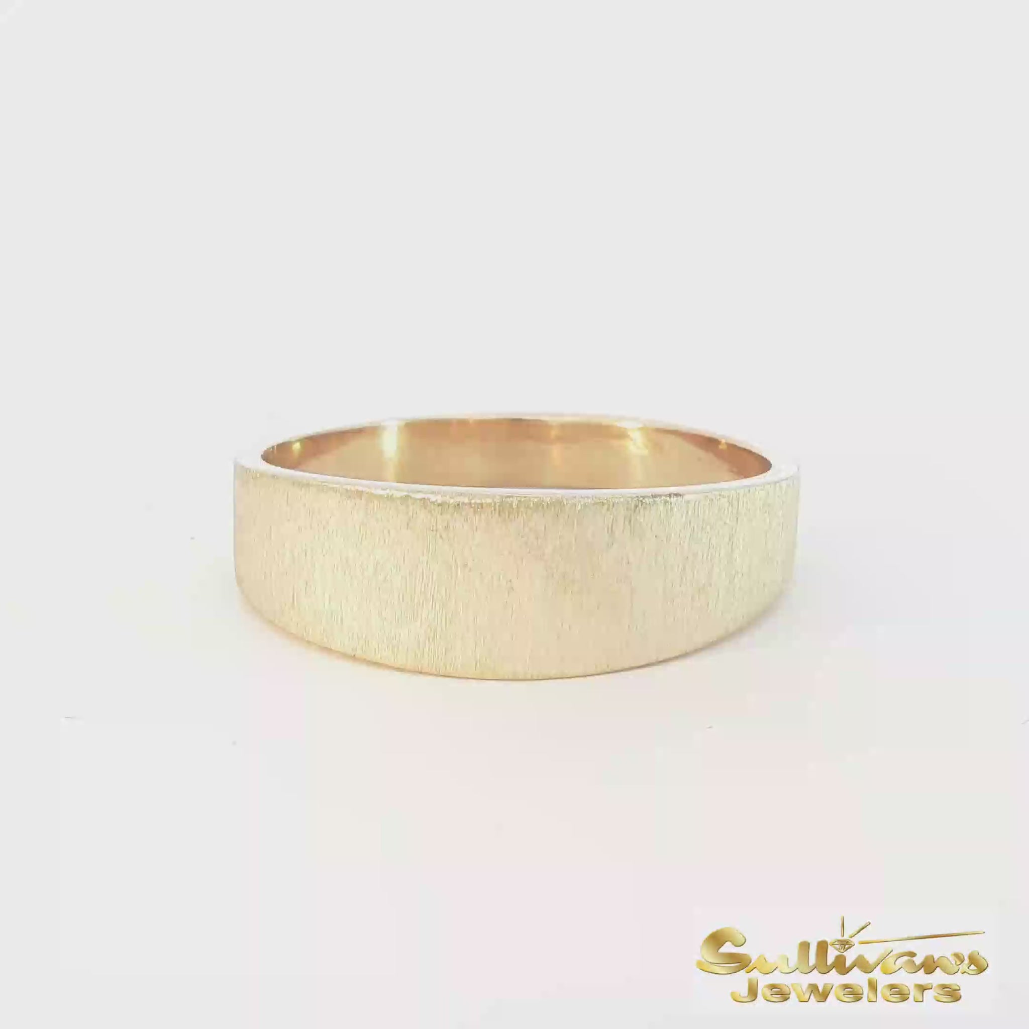 A symbol of strength and simplicity, this 14k yellow gold ring radiates quiet sophistication. Its soft brush finish reflects a subtle glow, offering a modern twist on a timeless classic. Elegant in its simplicity, this band carries warmth, meaning, and enduring beauty- perfect choice to celebrate love, milestones, or personal style.