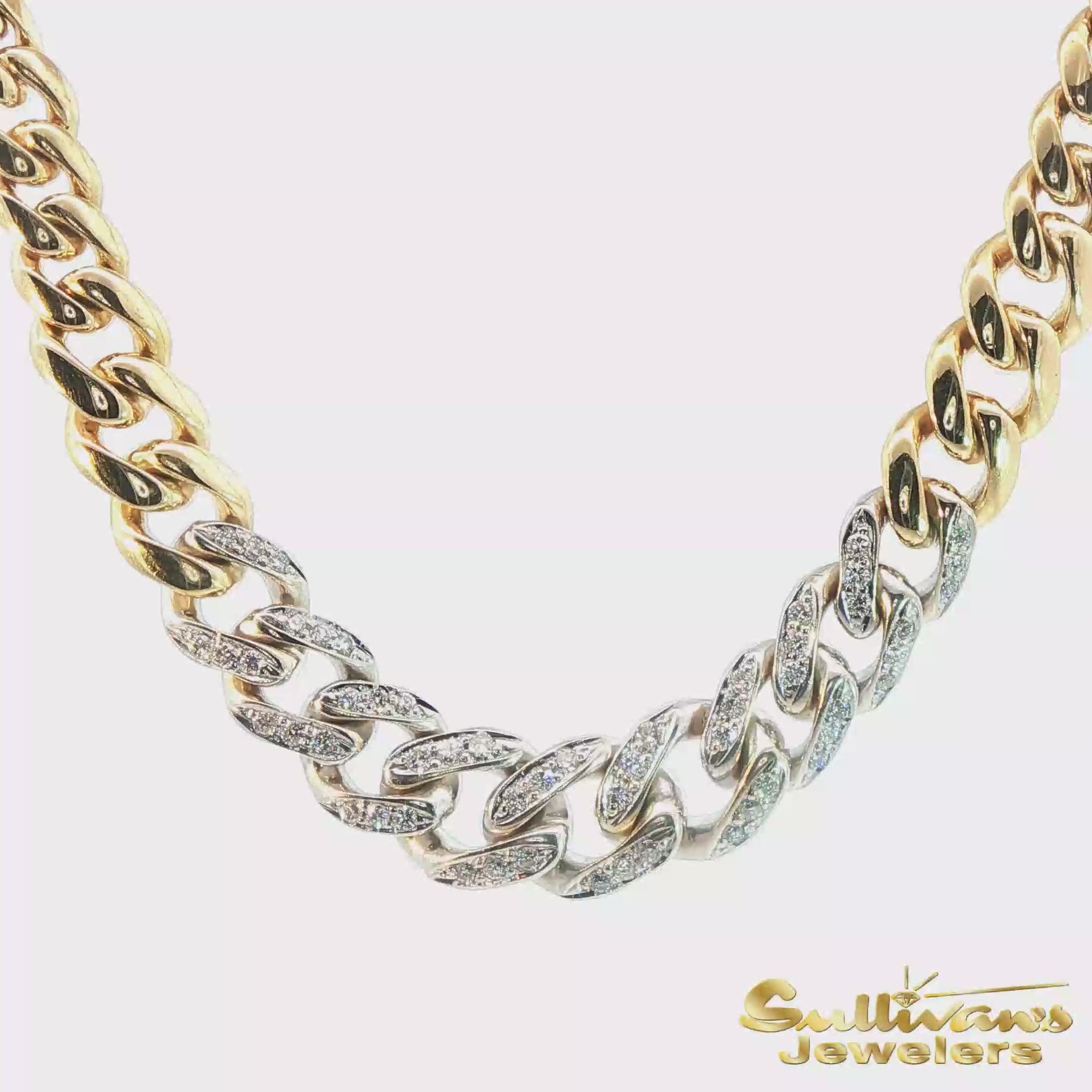 18K Two Tone Diamond-Accented Gold Cuban Chain