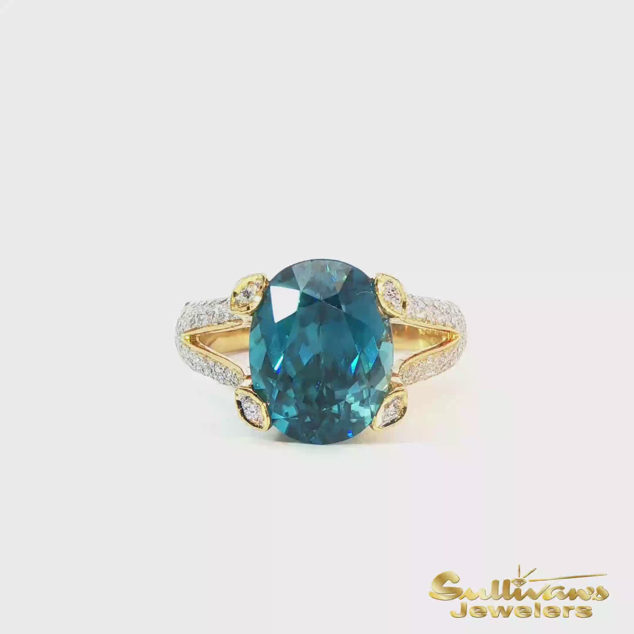 Elevate your style with this exquisite cocktail ring, featuring a vibrant blue topaz as its centerpiece. The oval shaped, brilliant cut gemstone is securely set in a luxurious yellow gold band. A dazzling piece that seamlessly blends classic elegance with a touch of modern flair.